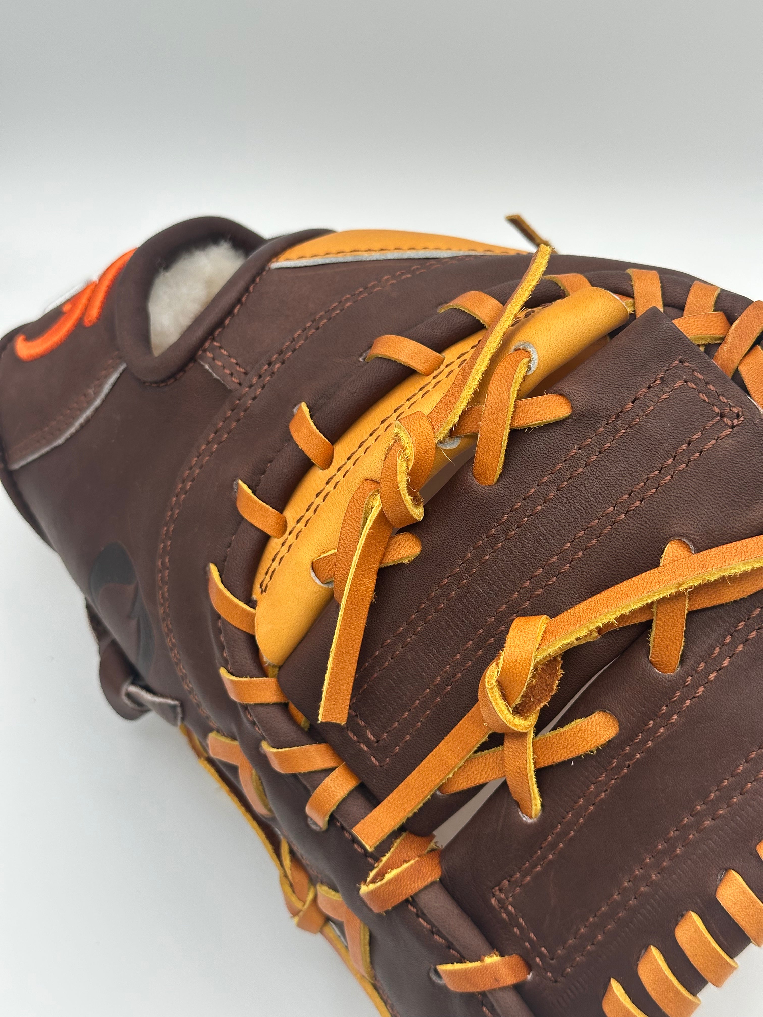 The Licensed 2 Hunt™ collection brings you a carefully crafted 12.5" Closed-WEB first base glove that’s all about lightweight agility and expert handmade stitching. Built with tough DEEP BROWN™ Steerhide Leather, it’s ready to handle whatever the game throws your way. The palm features top-notch Japanese KIP™ leather, loved by pros for being super light. Part of the fuego® Ball Gloves family, this glove is perfect for first base players looking to up their game and stay in control. Plus, the bright caution-orange fuego logo on the wrist adds a fiery touch to your winning style!