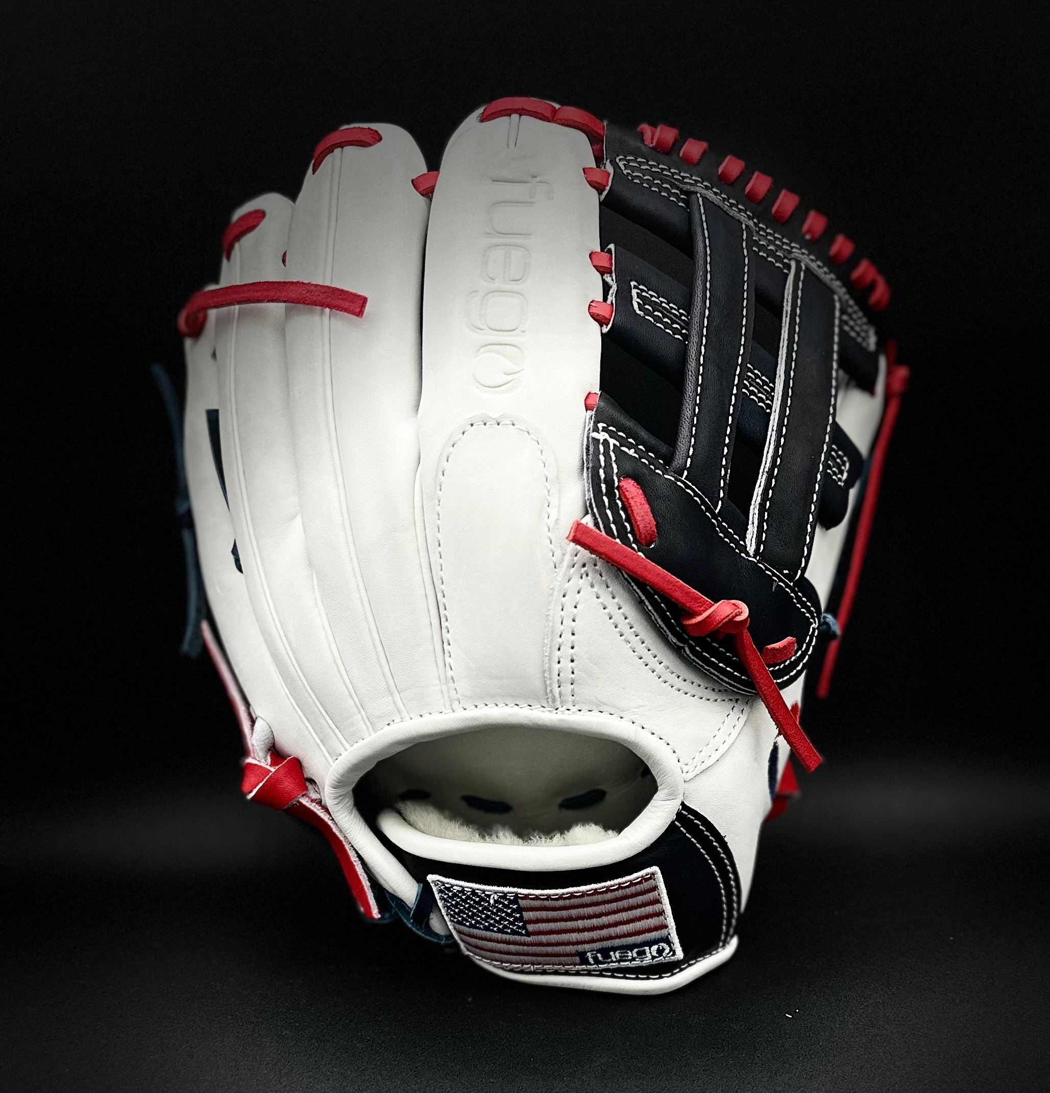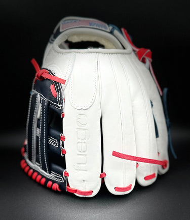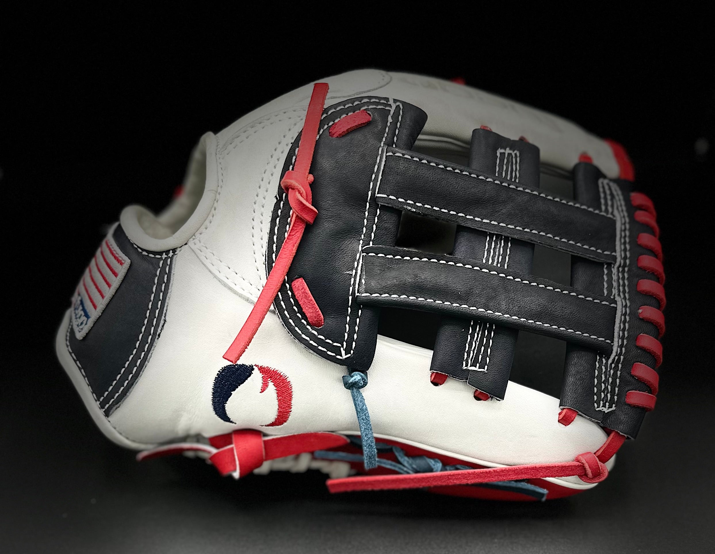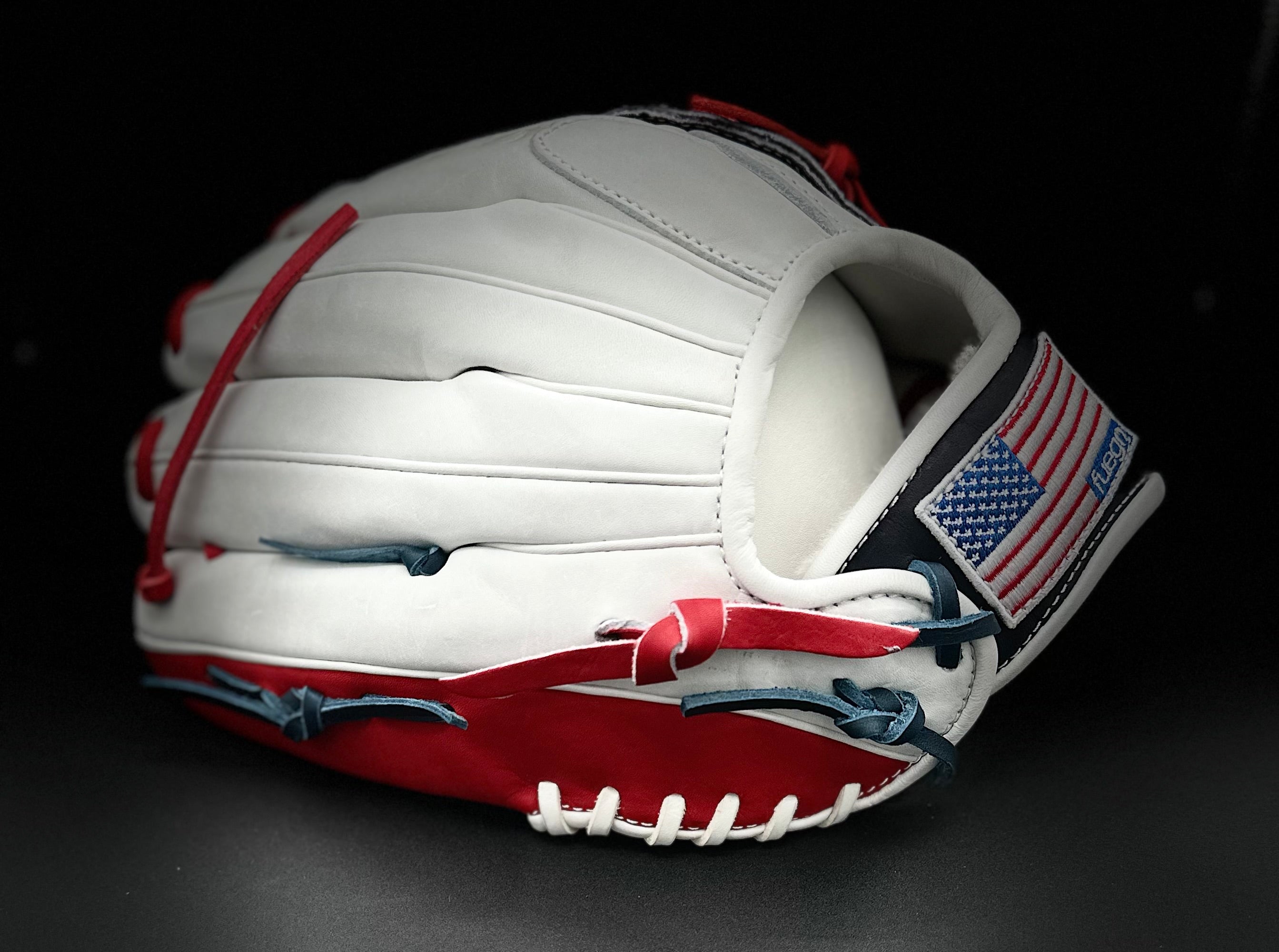 The Walk-Off Limited™ "GO USA" Infield/Outfield glove grabs attention with its vibrant red, white, and blue design. Made from top-quality Japanese steerhide, it offers a lightweight yet durable feel and breaks in quickly for immediate use. This 12” glove features a bold color combination and an American Flag wrist patch, secured with expert stitching for lasting strength. Constructed from Japanese KIP™ leather, the GO USA includes an H Web, ideal for quick, agile plays in both the infield and outfield. Play with pride and power in a glove that represents your American spirit.